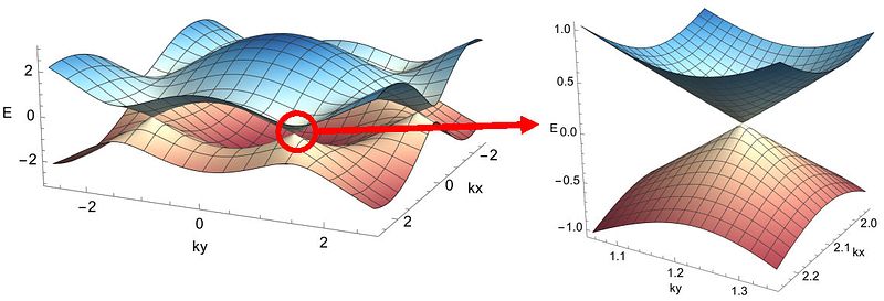 Mathematica: Dispersion of graphene. Zoom on Dirac point.